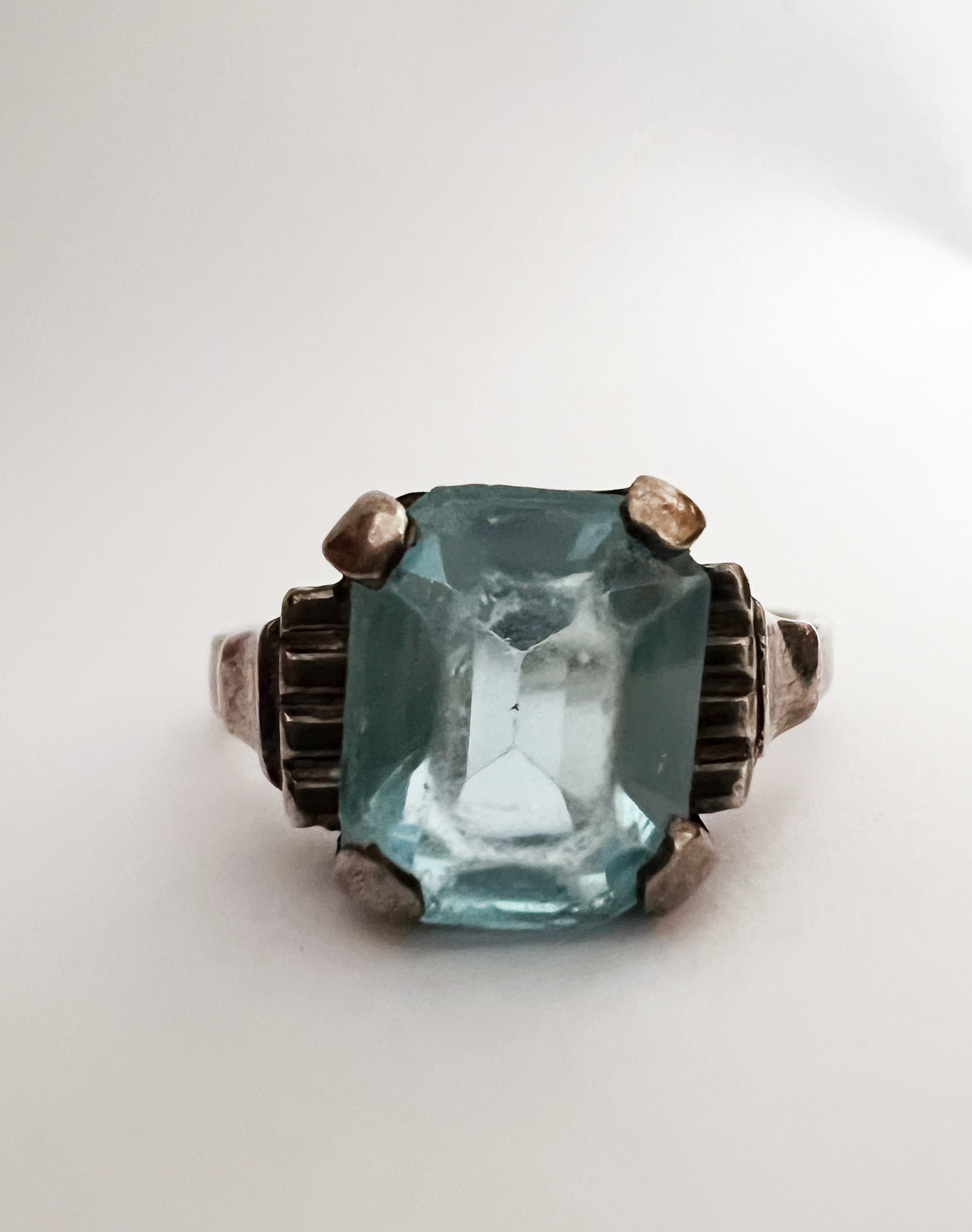 Approaching me with gemstones she had personally acquired, this client sought to breathe new life into them, envisioning a contemporary everyday piece that would highlight their beauty. The centerpiece, a Blue Topaz, is complemented by alternating blue sapphire and grey moissanite side stones.